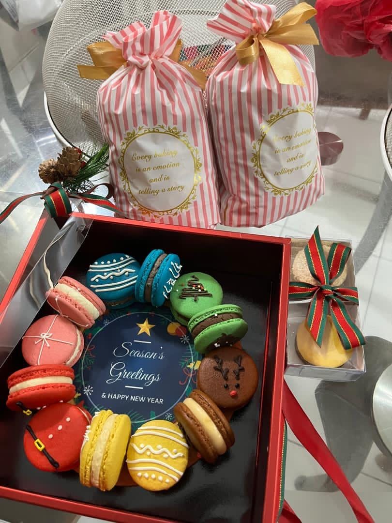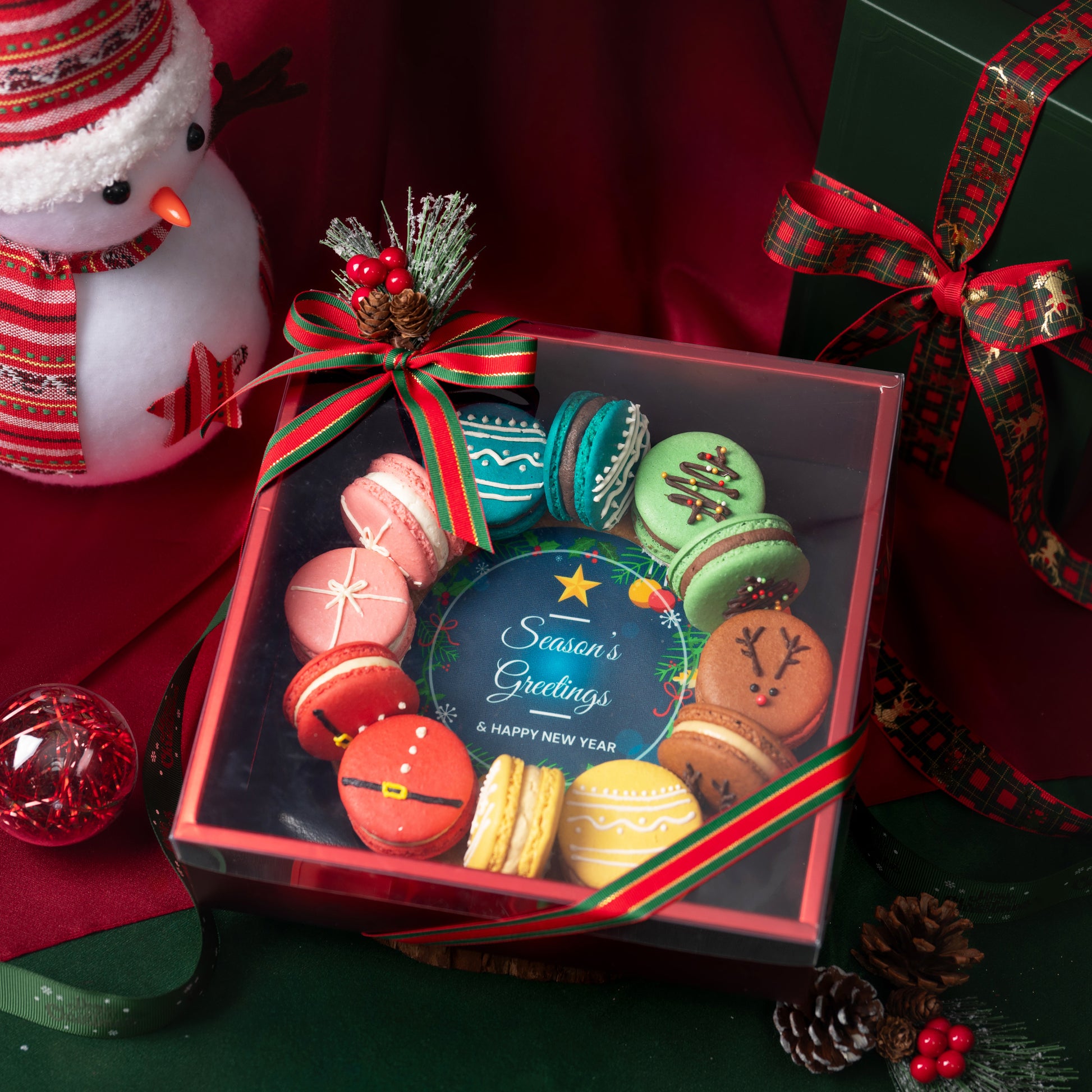Celebrate the sweet moments that matter with our Merry Macaron Moments gift box. This elegant selection features six irresistible flavours, Honey Comb, Rose Lychee, Red Velvet, Peanut Butter, Chocolate Mint and Cookies & Cream, each crafted with a crisp shell and a silky‑smooth filling. Whether you’re treating yourself, sharing at a gathering, or gifting someone special, these macarons bring refined flavour and festive charm to every occasion.