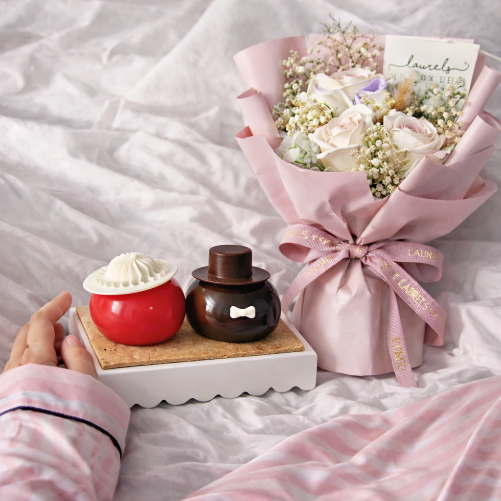 Rosy Duet (Small) – with Aurora Rosey Bouquet (Soap Flowers)