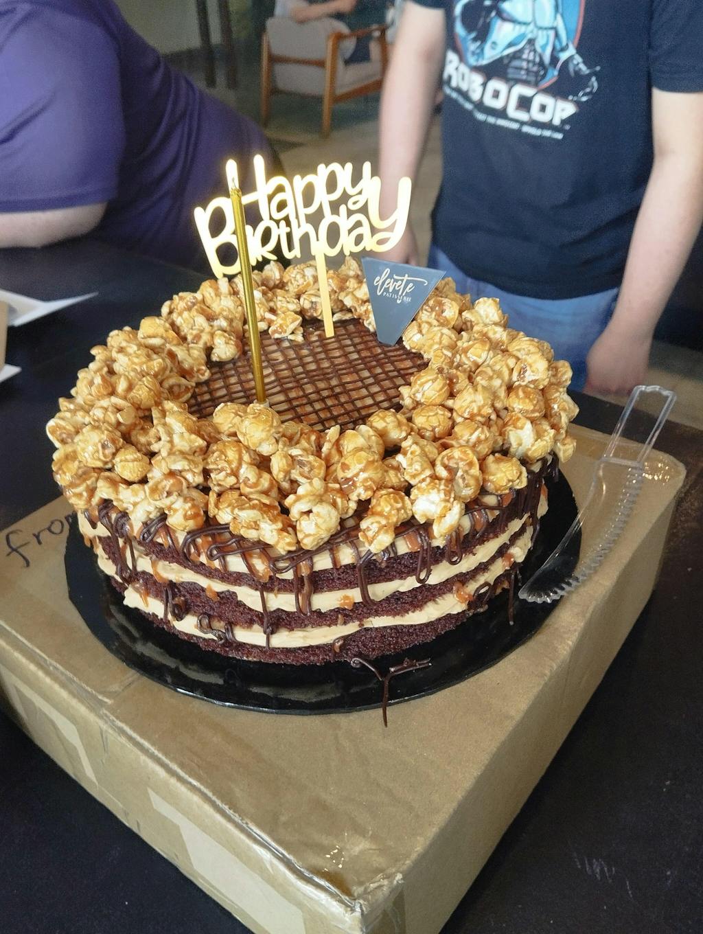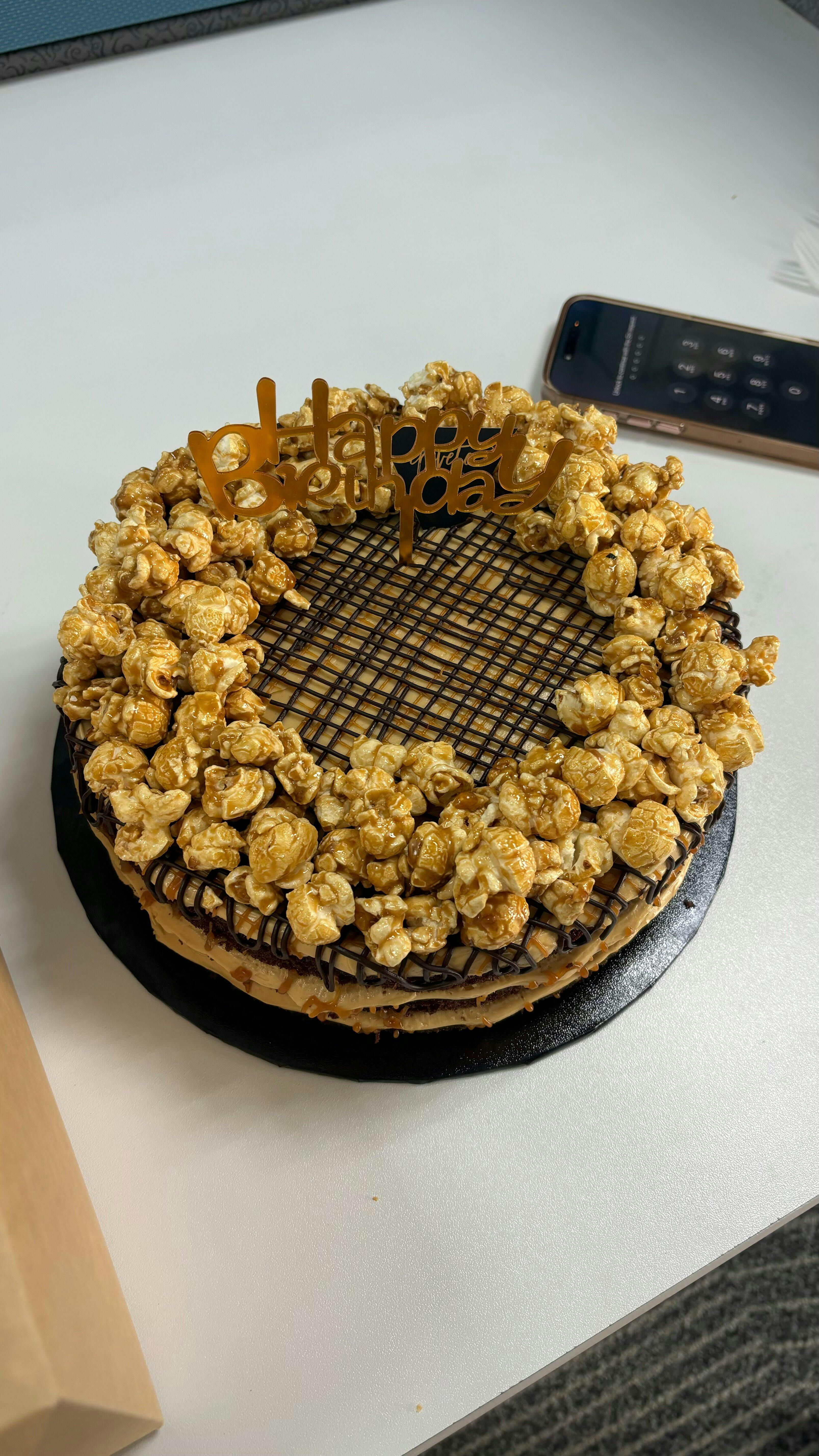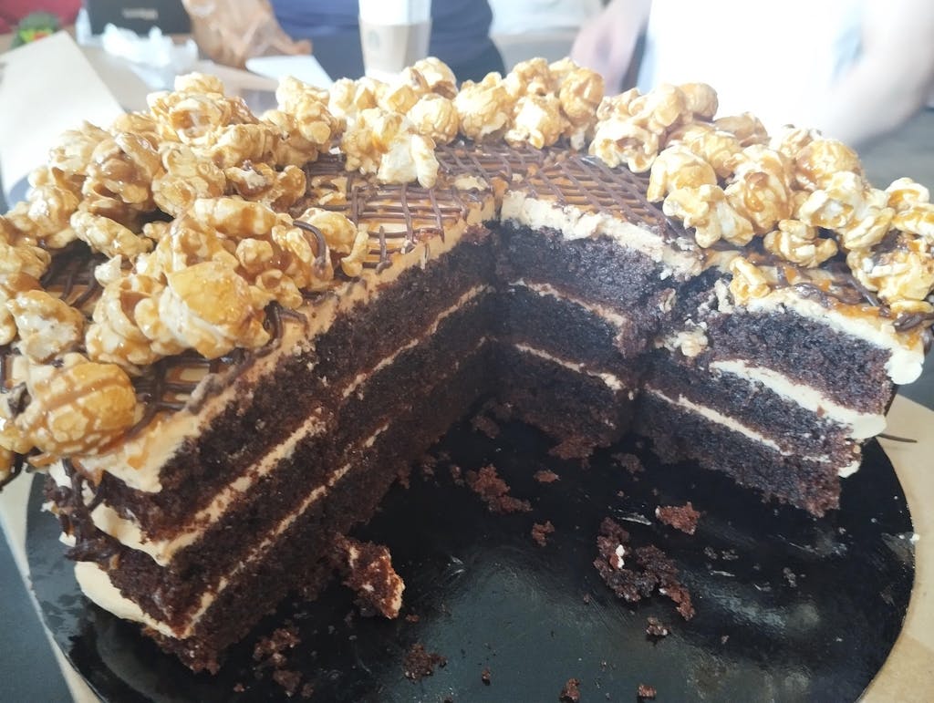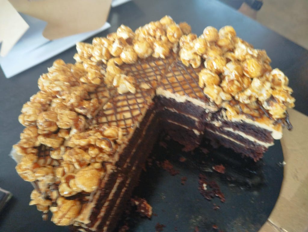 | Ingredients : | Dairy, Eggs, Vanilla, Flour, Cocoa Powder, Homemade Salted Caramel Sauce, Homemade Popcorns |