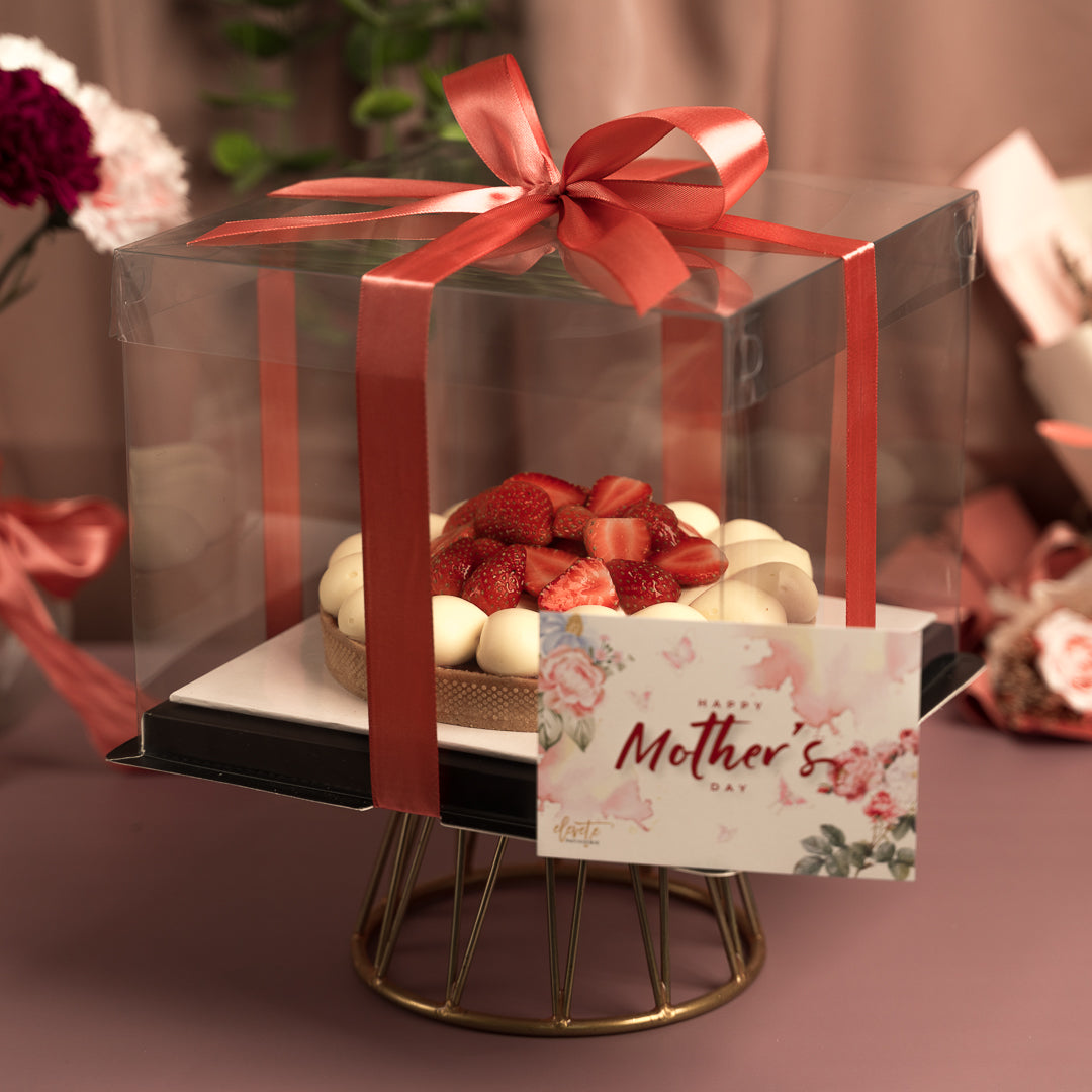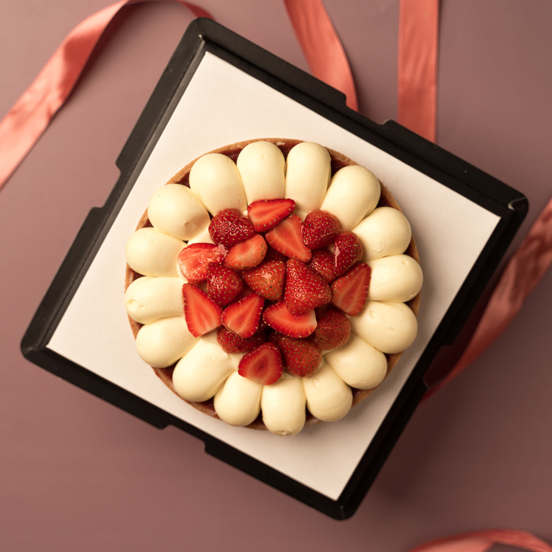 Our unique take on the classic French dessert features a delectable almond pâte sucrée (almond flour tart crust), layered with a zesty lime chiffon sponge and tangy strawberry compote. Topped with whipped mascarpone cream and glazed sun-kissed strawberries, this creation embodies the artistry of French pastry and celebrates the sweet nurturing love of a mother.