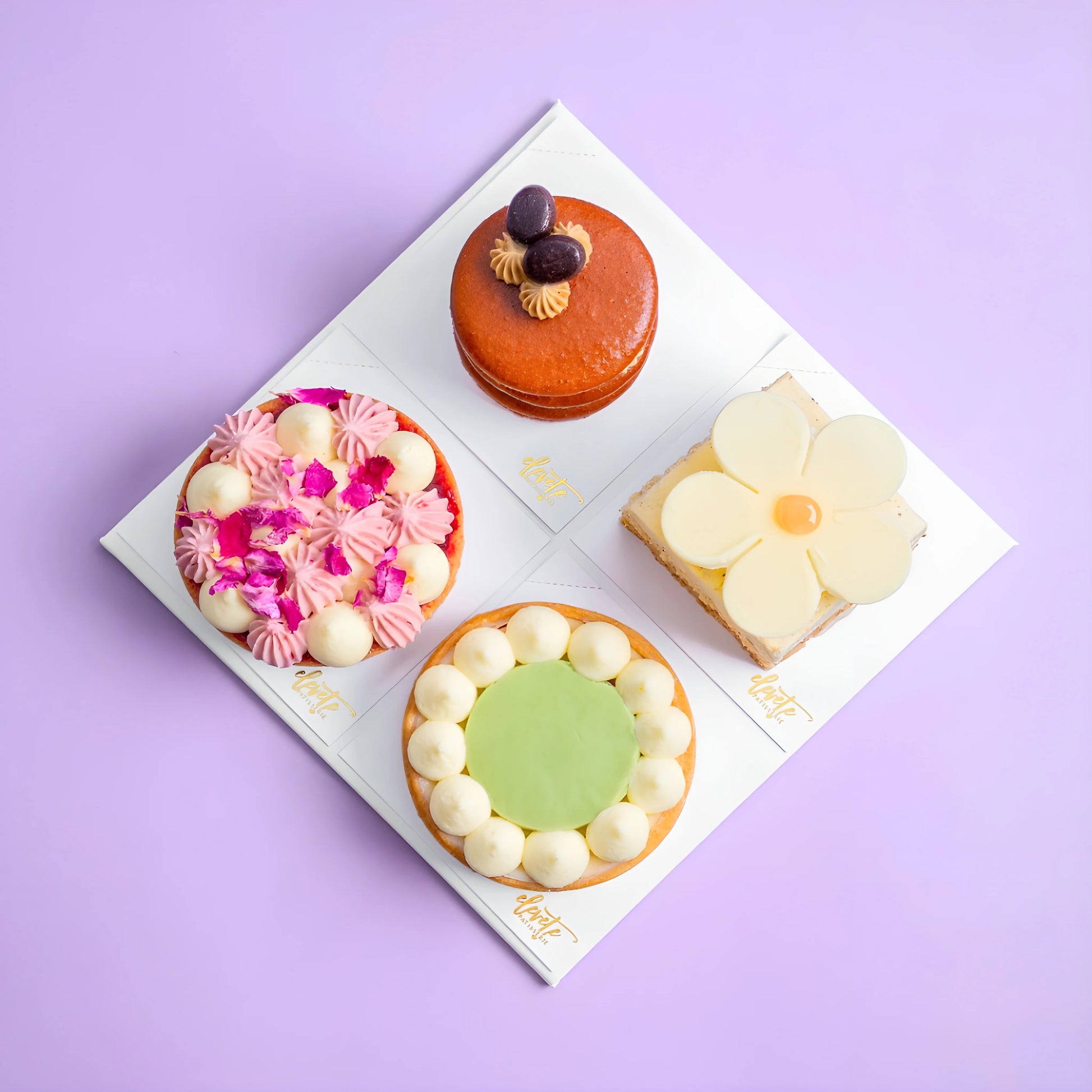🌼 Vanilla Petit Gateau – This Petit Gâteau features 6 harmonious layers of vanilla in different textures and flavors. Each bite is a symphony of rich vanilla goodness, perfectly balanced to offer an unforgettable dessert experience.